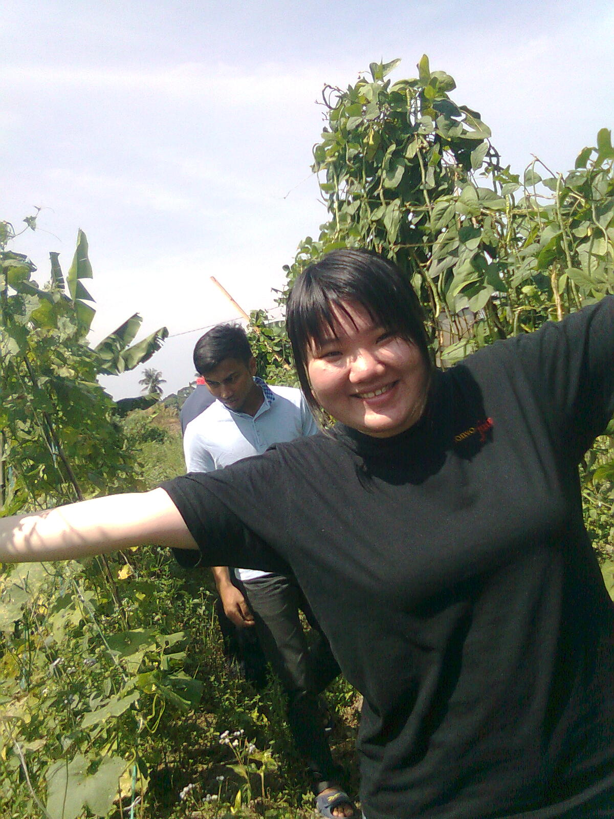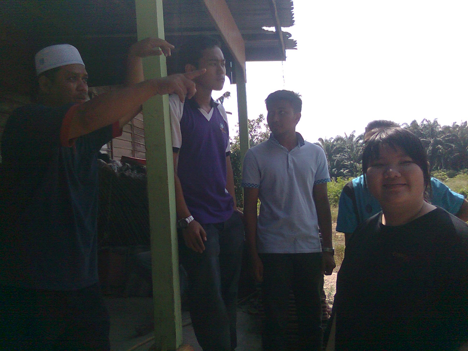 Okay, sampai sahaja dekat kebun, En. Rozelan bawa kami melawat ke sekitar kebun. Sangat besarlahh. Ada la dalam 5ekar. Ada ditanam kelapa sawit, kacang botol, petola, kacang panjang, ubi kayu dan cili. Banyak jugalah hasil tanaman mereka. Dekat situ juga ada haiwan ternakan seperti kambing dan ayam. En. Rozelan kata, dekat jambatan sana, boleh memancing. Dekat dengan bendang tu ada kebun buah-buahan. Wow Wow. Boleh buat barbeque. Bak kata Fitri, dah ada port baru untuk barbeque. huhu Seronokkk.